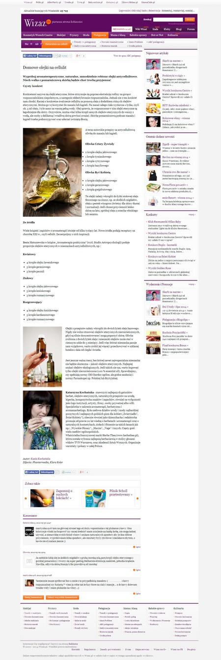 Beata Matuszewska w książce „Aromaterapia praktyczna” (wyd. Studio Astropsychologii) podaje proporcje olejków eterycznych w mieszankach antycellulitowych, np.: